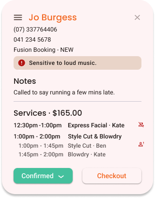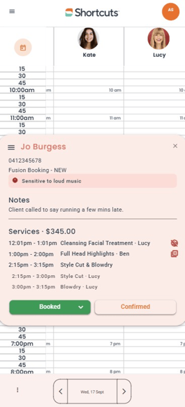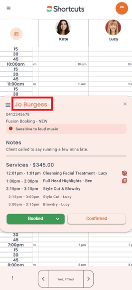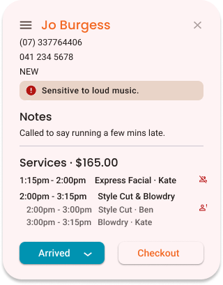 The appointment touch tip provides a quick and easy way to manage appointments and client details.